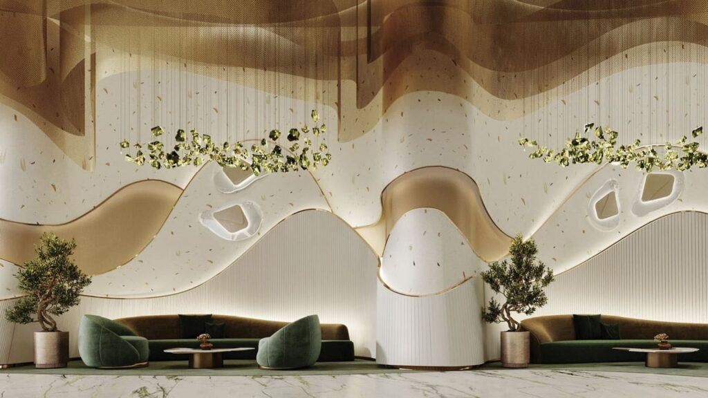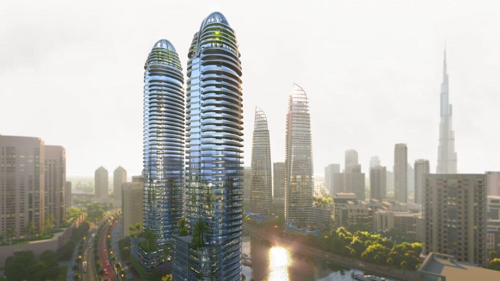 Damac Canal Crown is the new 38-storey high-rise development designed by de Grisogono located at Business Bay, Dubai offering a collection of studios, 1 & 2 bedroom apartments and 3 & 4-bedroom super luxury duplexes. The exclusive design facade developed by renowned Damac Properties comes with high-end standard amenities and a choice of luxury lifestyle, offering awe-inspiring views of the Dubai Canal. Nestled along the picturesque waterfront, the development boasts a striking exterior that seamlessly blends contemporary design with timeless aesthetics. The facade, characterized by sleek lines and floor-to-ceiling glass panels, provides an abundance of natural light while affording residents captivating panoramic views of the surrounding cityscape. The developers have collaborated with renowned architects and designers to create a truly iconic structure that leaves a lasting impression.