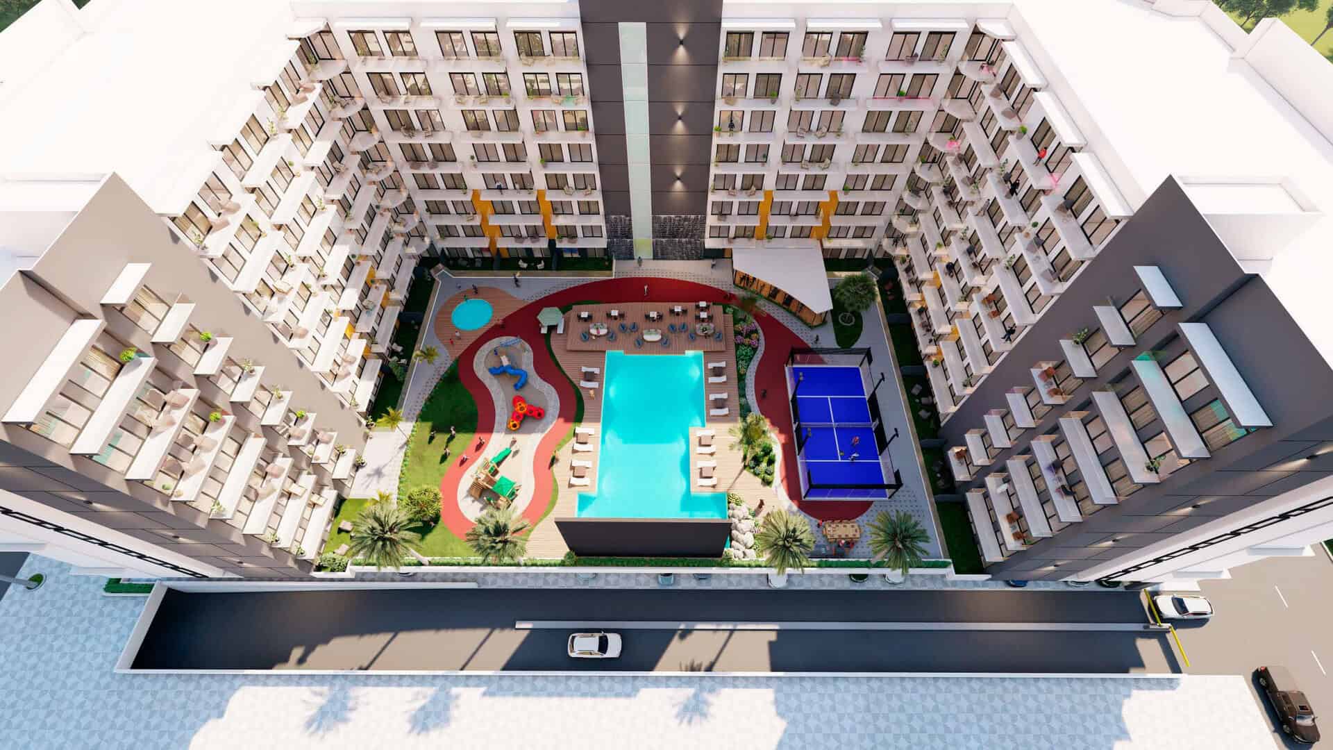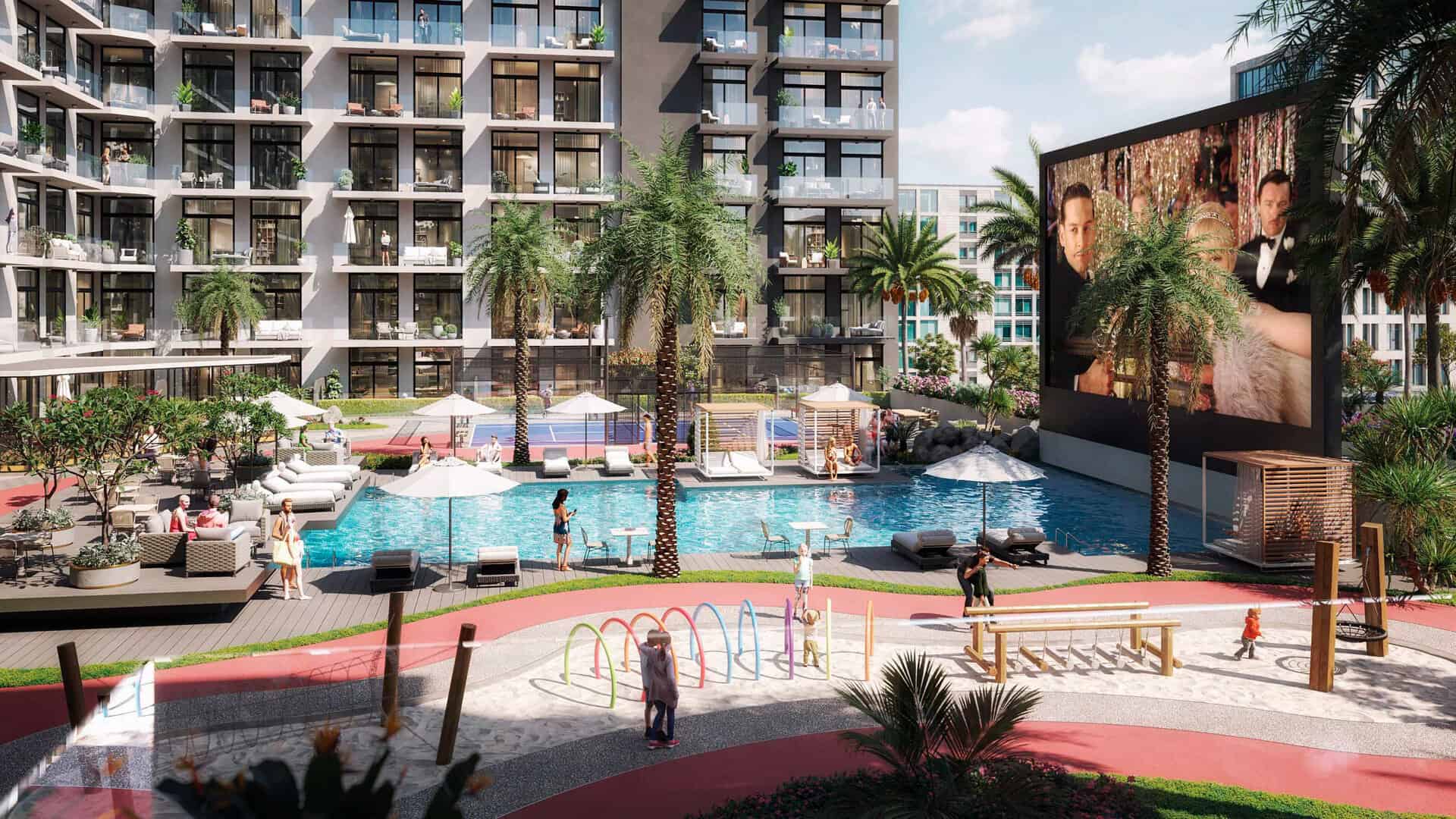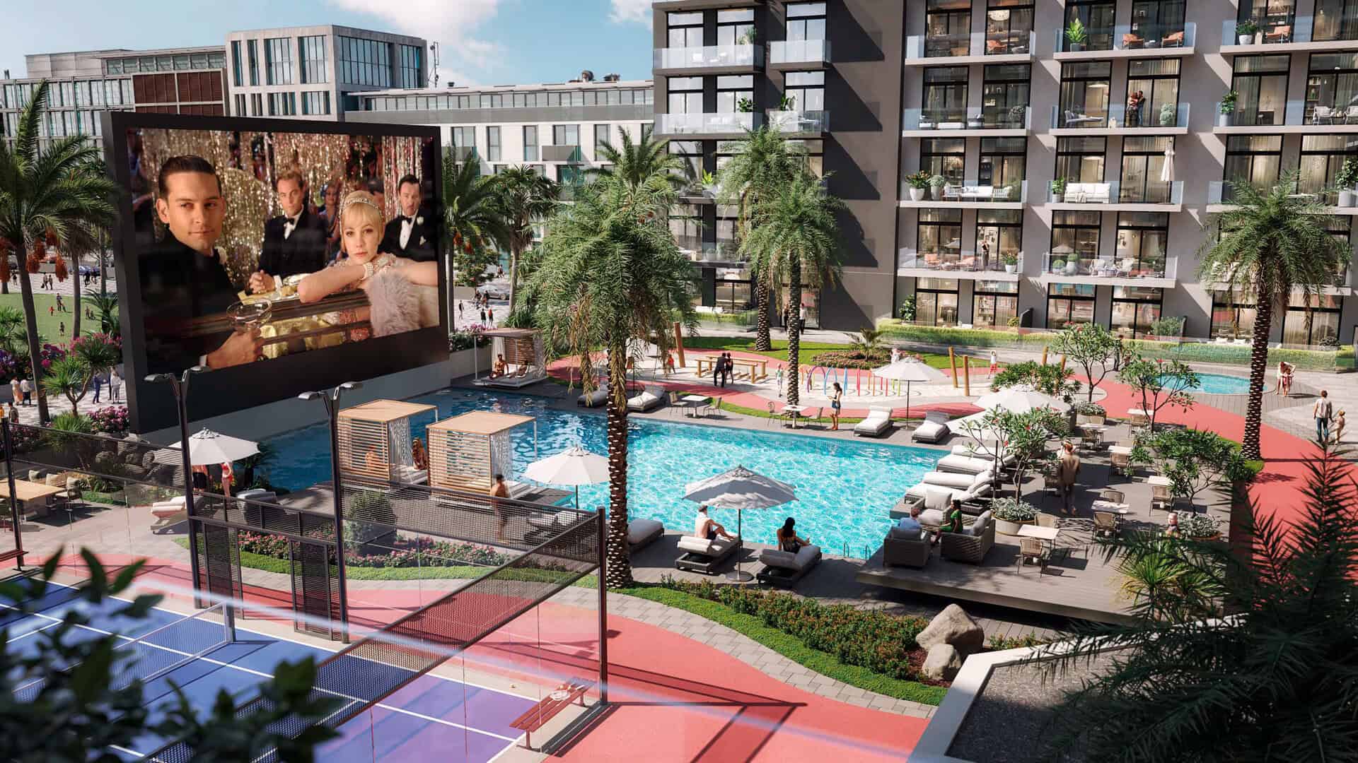 Laya Heights offers a self-sufficient and luxury lifestyle to its residents with its thoughtfully designed amenities hub that features an outdoor cinema and padel tennis court, double height ceiling designer lobby, gracious studio and one bedroom floor plans, ample space to work from home and opportunity to connect with the residents of the building.