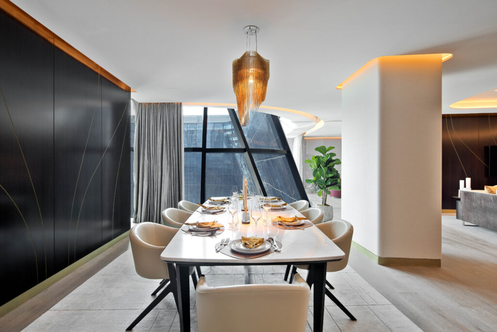 The Opus es un emblemático desarrollo de estilo de vida diseñado por Omniyat por la arquitecta de renombre mundial Zaha Hadid. Cuenta con un número limitado de residencias amuebladas. El proyecto, que consta de dos estructuras que forman un único cubo que parece flotar sobre el suelo, también alberga el ME Hotel by Melia Group of Hotel. Este desarrollo, que ofrece un extraordinario nivel de servicios personalizados y lujosos de cinco estrellas tanto para los huéspedes como para los propietarios, redefine el arte de vivir en medio de la opulencia visual.