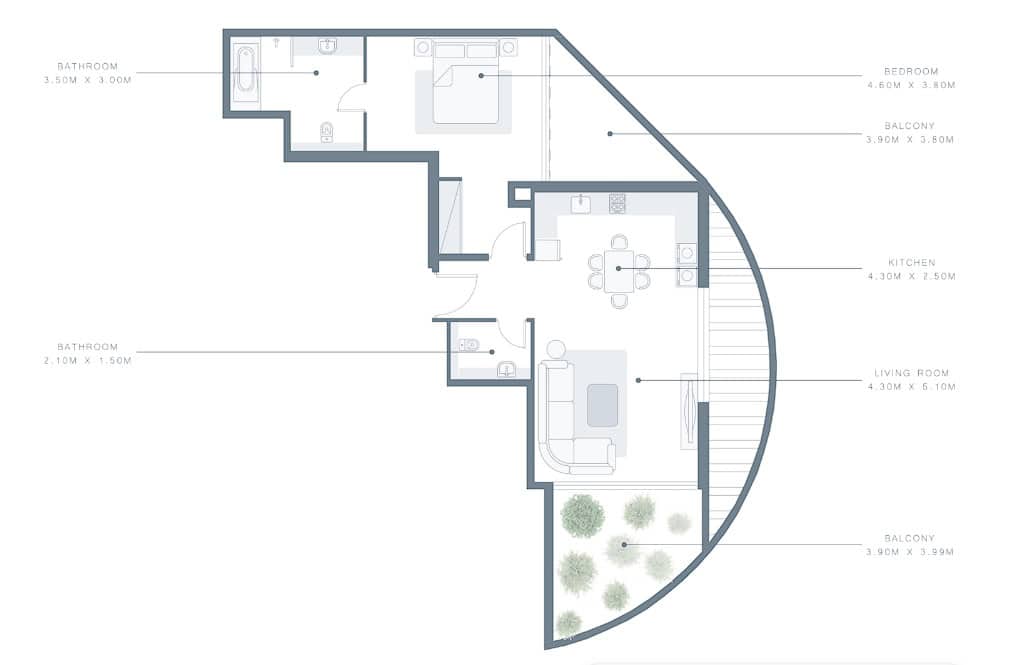 ROYAL BAY, una suntuosa colección de apartamentos residenciales con todos los servicios situados en la medialuna de la emblemática Palm Jumeirah de Dubái, ofrece a los compradores de viviendas una oportunidad única de conseguir un lugar en uno de los pocos desarrollos que quedan en la Octava Maravilla del Mundo. ROYAL BAY, con un ángulo inteligente de 45 grados y vistas espectaculares del horizonte de la ciudad, el Hotel Atlantis y el mar Arábigo, fue diseñado para maximizar la luz y brindar vistas impresionantes desde todas las habitaciones. La propiedad disfruta del privilegio único de tener acceso directo a una playa privada.