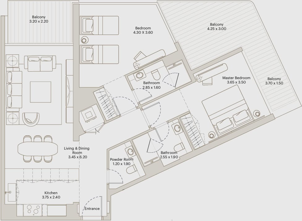 3 habitaciones in Burj Jacob and Co Residences