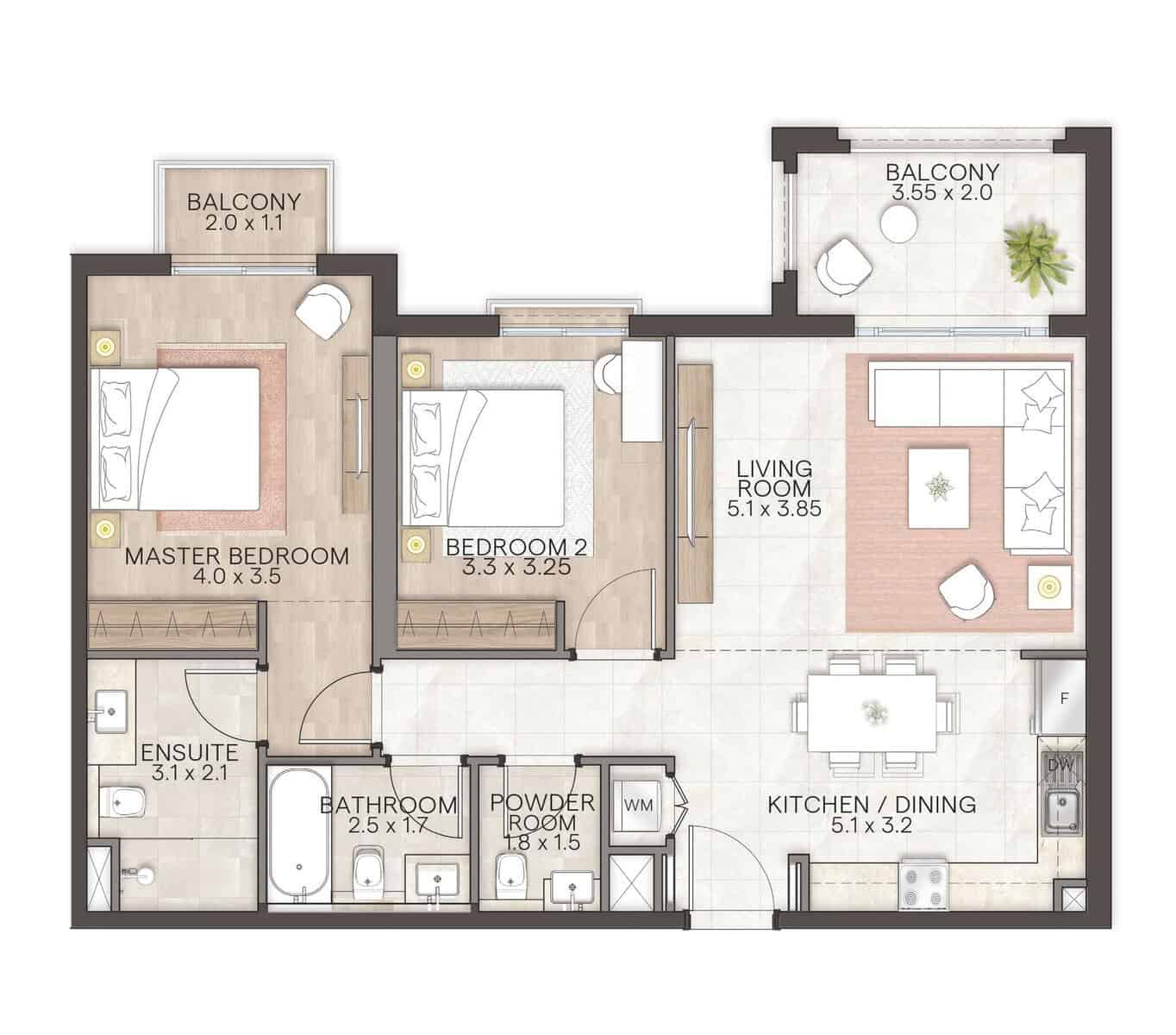 2 habitaciones in Damac Bay by Cavalli
