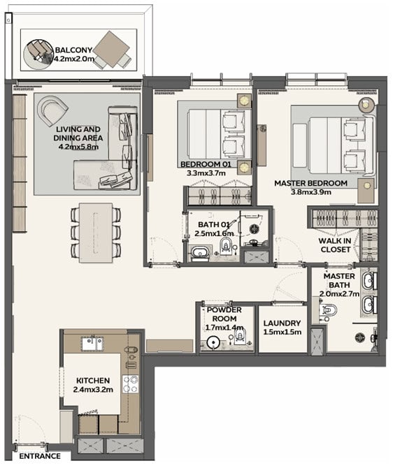 2 habitaciones in Samana Barari Views