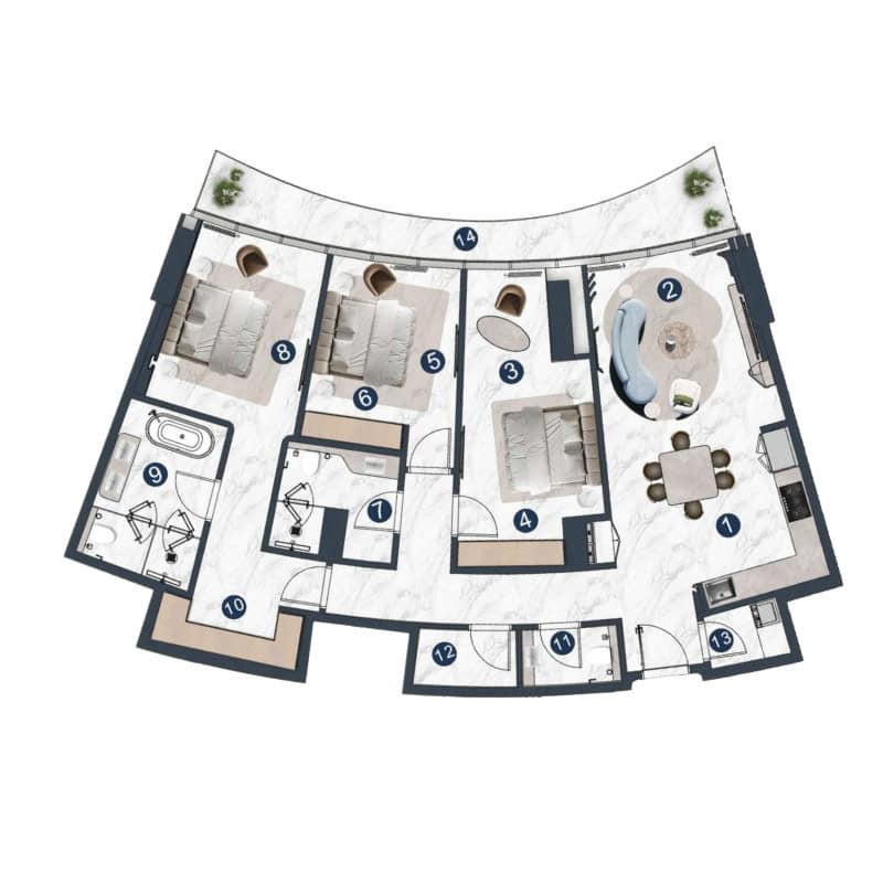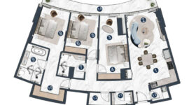 Prepárese para presenciar una maravilla arquitectónica que se yergue como un faro de sofisticación. Con una altura de más de 240 metros, esta impresionante obra maestra llama la atención y ofrece una residencia que trasciende las expectativas. Con casi un millón de pies cuadrados de espacio cuidadosamente diseñado, La Mazzoni establece un nuevo estándar para la vida de lujo. Desde las cascadas de la plaza de la planta baja hasta las soleadas piscinas de la azotea, esta es una visión de una forma incomparable.