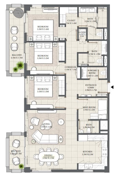 3 habitaciones in Mercedes Benz Places by Binghatti
