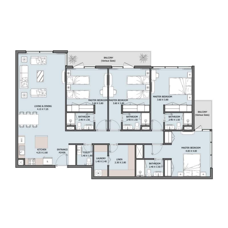Verdana VI es una comunidad residencial de primer nivel ubicada en Dubai Investments Park (DIP), que ofrece un estilo de vida contemporáneo y lujoso muy cerca de las principales atracciones de Dubái. Rodeado de parques, escuelas, mezquitas y tiendas minoristas, Verdana VI ofrece un entorno de vida sereno y bien conectado. Diseñado con la sustentabilidad en mente, DIP es uno de los desarrollos más ecológicos de la región. El extenso paisajismo y las políticas ecológicas reflejan el compromiso de la comunidad con la preservación de un entorno verde y limpio. Verdana VI cuenta con una combinación de 280 casas adosadas y 363 apartamentos, cada uno diseñado según los más altos estándares internacionales en diseño, calidad y espacio. Los residentes disfrutan de balcones o terrazas privadas, cocinas bien equipadas con gabinetes y encimeras y baños completamente alicatados con tocadores y espejos. Cada unidad viene con aire acondicionado, armarios empotrados en los dormitorios y, en algunos diseños, baños privados, lavaderos y cuartos de servicio. Algunas casas adosadas cuentan con una sala de estar de doble altura y un techo abovedado, lo que agrega una capa adicional de lujo a la experiencia de vida.