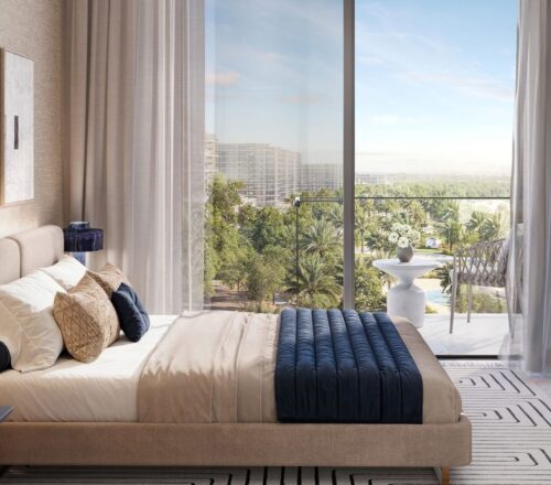 Golf Greens at Damac Hills, Dubai is an exceptional residential twin tower from Damac Properties with luxurious and elegant 1 and 2 bedroom apartments. The complex has an amazing infrastructure, decorated with a small amount of greenery. This luxurious facility is the center of many essential leisure amenities and services, as well as stunning views of the lush greenery and Trump International Golf Course. Each tower consists of spacious and exquisitely designed houses with an elegant layout and the smallest details throughout the room. Thanks to intelligent technologies in the rooms, kitchens and bathrooms, high-quality equipment and fittings, as well as soothing furniture, residents can enjoy a luxurious life with many other amenities.