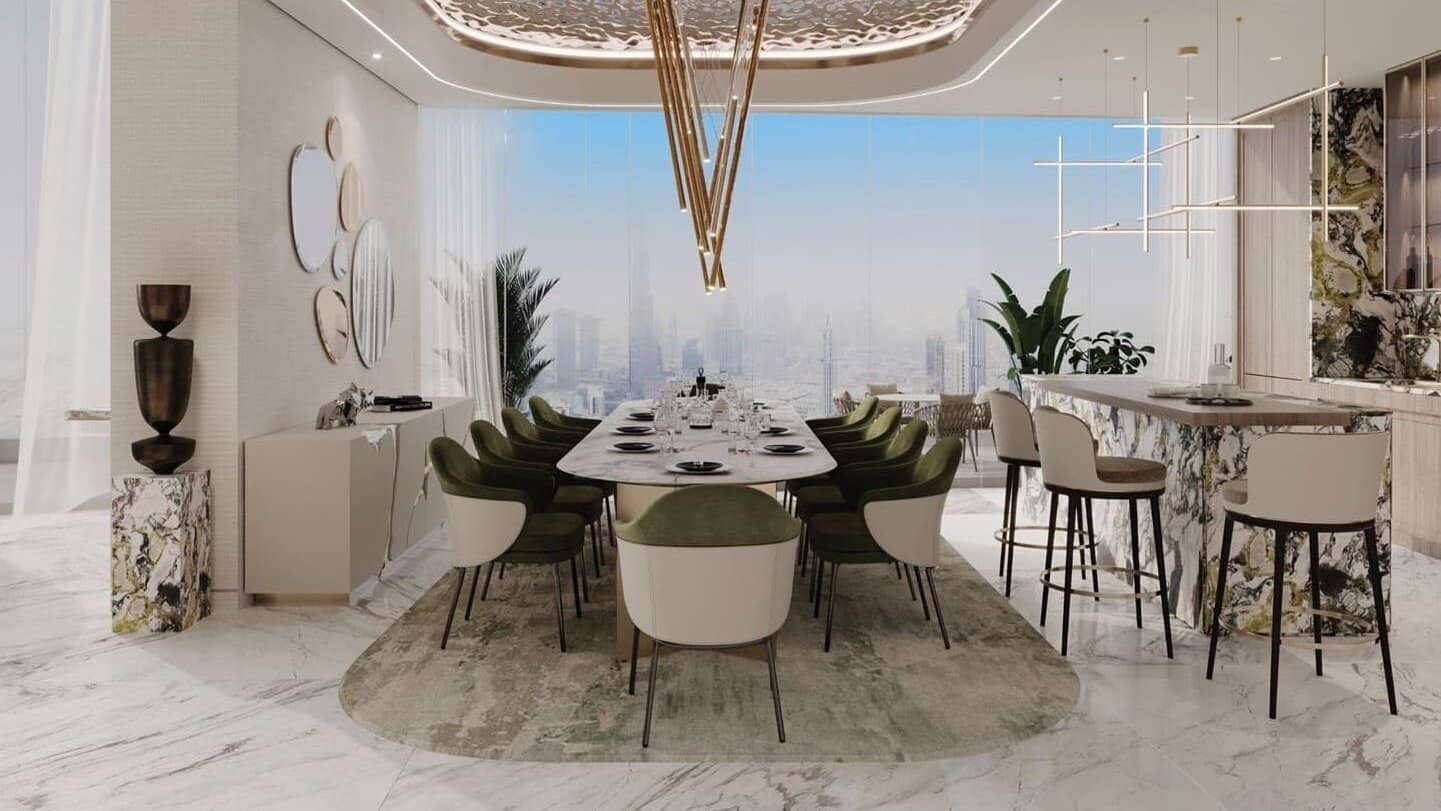 Damac Canal Crown is the new 38-storey high-rise development designed by de Grisogono located at Business Bay, Dubai offering a collection of studios, 1 & 2 bedroom apartments and 3 & 4-bedroom super luxury duplexes. The exclusive design facade developed by renowned Damac Properties comes with high-end standard amenities and a choice of luxury lifestyle, offering awe-inspiring views of the Dubai Canal. Nestled along the picturesque waterfront, the development boasts a striking exterior that seamlessly blends contemporary design with timeless aesthetics. The facade, characterized by sleek lines and floor-to-ceiling glass panels, provides an abundance of natural light while affording residents captivating panoramic views of the surrounding cityscape. The developers have collaborated with renowned architects and designers to create a truly iconic structure that leaves a lasting impression.
