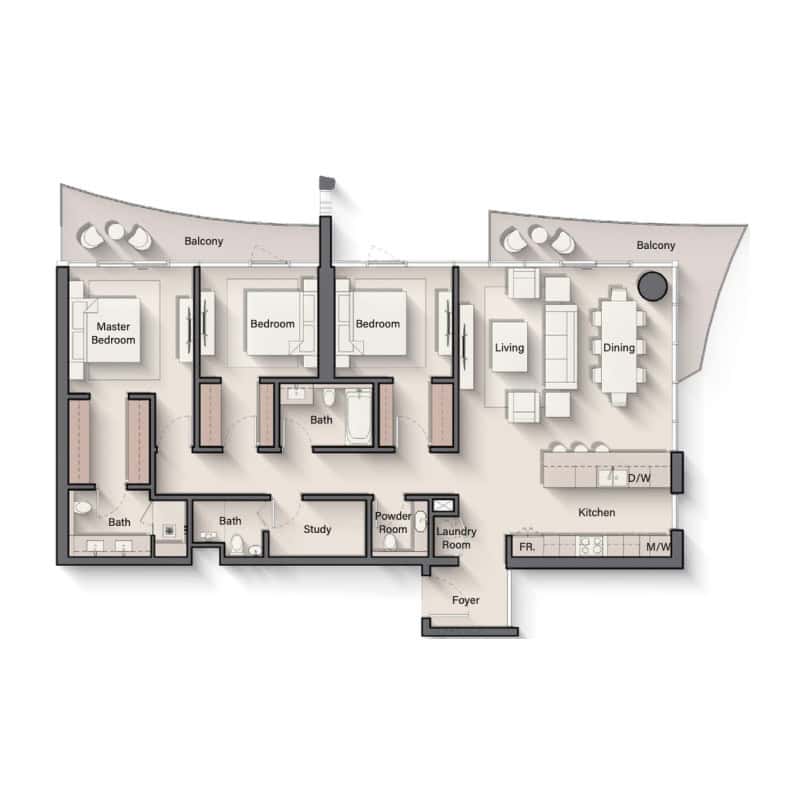 From the panoramic views aboard coral-shaped moorings, through fine details that echo the aesthetic of opulent yachts, Cala Del Mar is a marine- inspired residence that conjures romantic notions of the ocean to create a new standard in deluxe coastal living. The property gives the impression of having saltwater running through its veins, yet every aspect of its design optimizes elegance while maintaining a strong connection to its nautical environment. The ever-shifting patterns that are created by the constant ebb and flow of water have inspired a design path that exists within every aspect of Cala Del Mar. By capturing the essence of an ever-changing coastline, residents will become an integral part of their exclusive location. More than a refuge from the elements, Cala Del Mar embraces the beauty of the wide-open space that shaped the integrity of the entire complex. Unique architectural sensibilities emulate the unique location to reveal a building that is one with its natural habitat. The fundamental inspiration for the entire Cala Del Mar development was to create a private area where you can truly feel at home. The living spaces feature universally appealing elements, such as large, open rooms with floor-to-ceiling windows that capture the unique daylight before revealing the awesome spectacle of a starlit sky.
