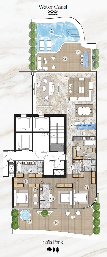 Bringing to life the concept of “Villas in the sky”. Inspired by the smooth and rhythmic curves of the Ocean waves. With distinctive features such as infinity edge pools, double height volumes, large terraces. The Residence aims to create a new standard of luxury living, and to make a lasting imprint.