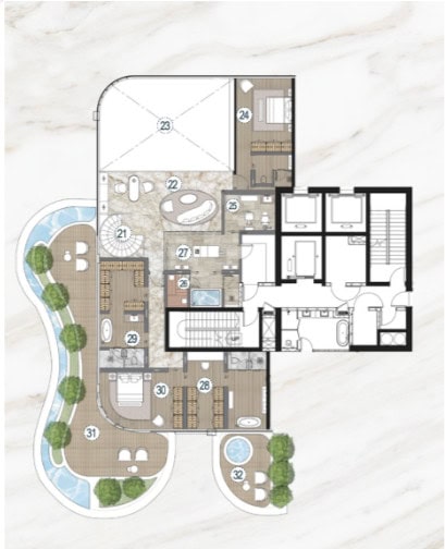 Bringing to life the concept of “Villas in the sky”. Inspired by the smooth and rhythmic curves of the Ocean waves. With distinctive features such as infinity edge pools, double height volumes, large terraces. The Residence aims to create a new standard of luxury living, and to make a lasting imprint.
